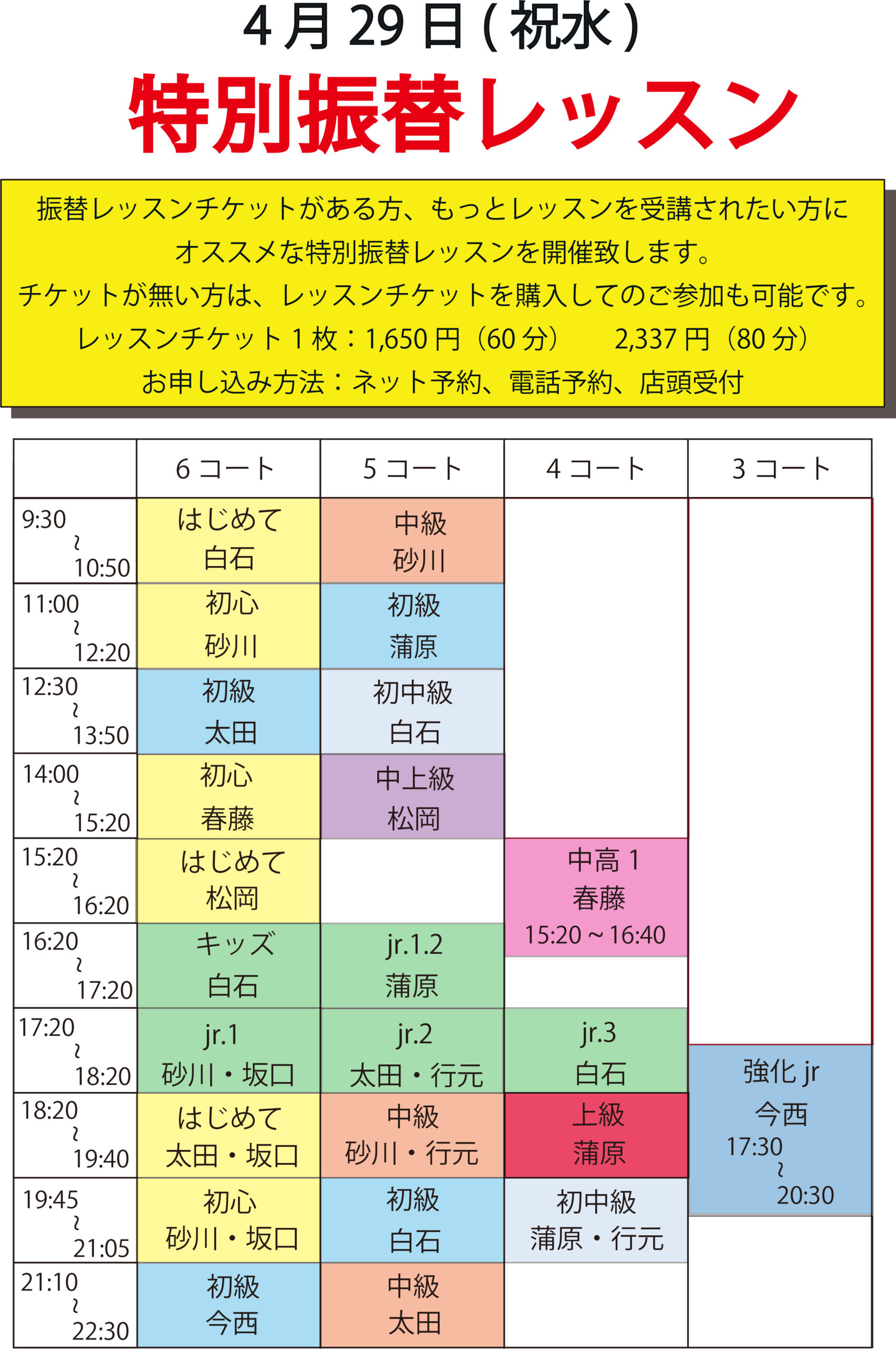 4月29日(祝・水)振替レッスン