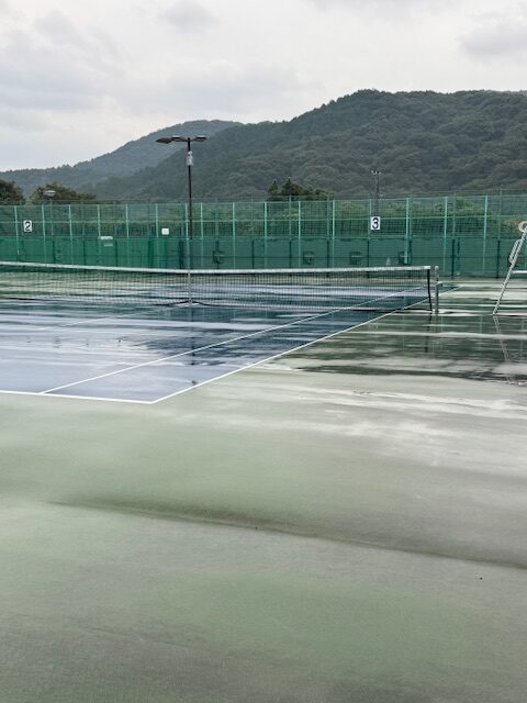 しかし、昨夜の雨の影響により、コートが濡れている為、以下の時間帯のレッスンにつきましては、中止とさせて頂きます。