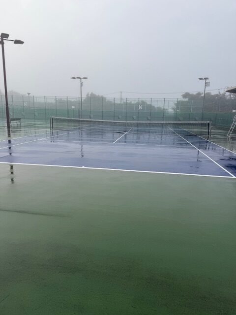 昨夜に発生いたしました濃霧の影響で、コートが水浸しの状態になっておりますので、以下の時間帯のレッスンは中止とさせて頂きます。