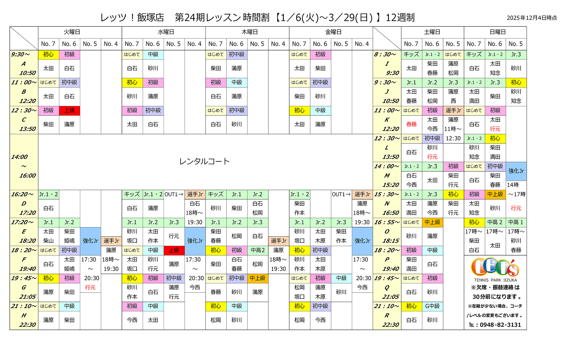 レベルとクラスが決まれば、ネット予約かお電話でご予約してください。 24時間受付中!ネット予約の方はこちら電話予約はこちら[0948-82-3131] 電話お問い合わせ時間:火~土 9:00~22:00 / 日 9:00~19:00